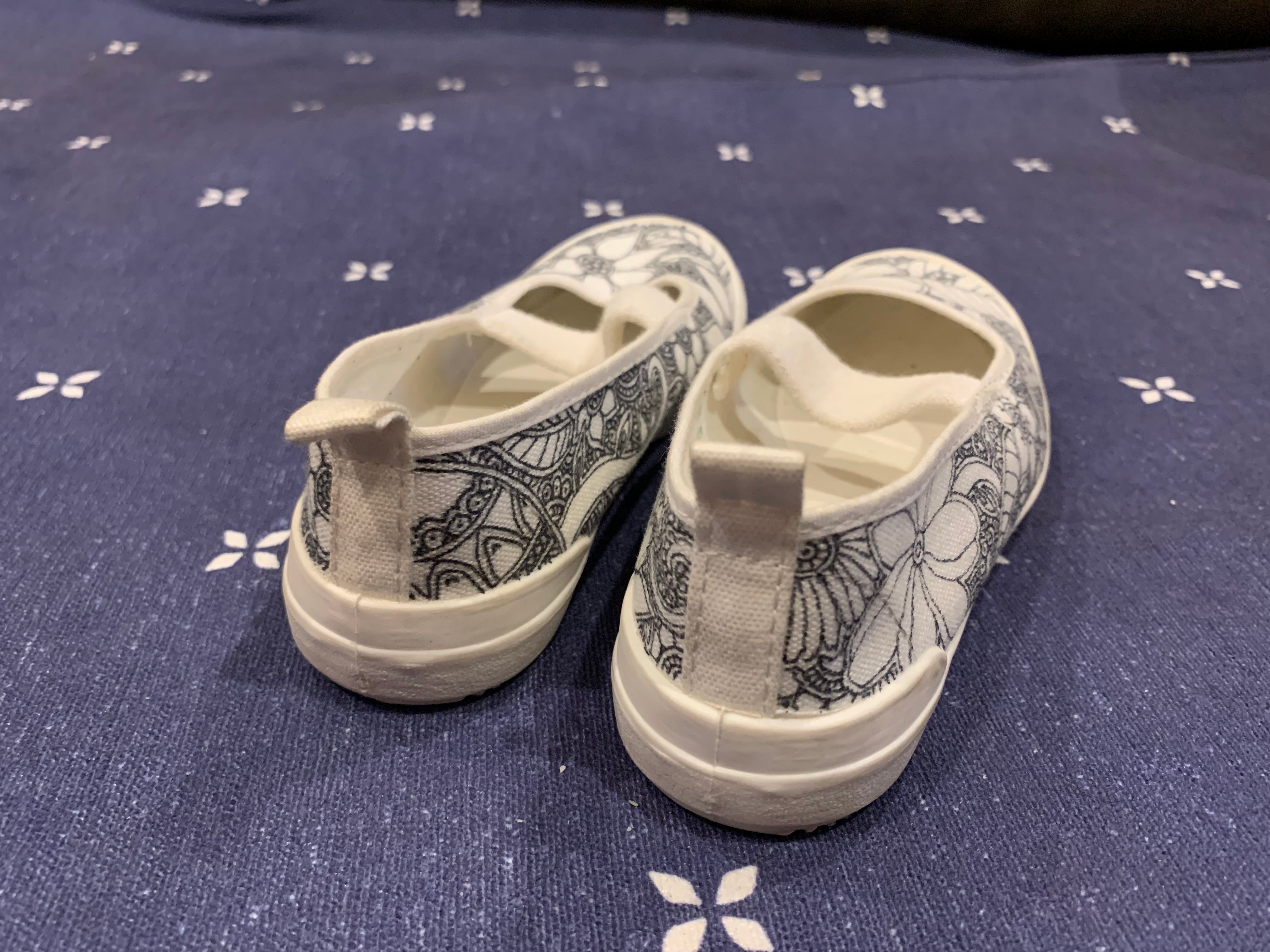 気まぐれでキッズサイズ(18.0㎝)のバレーシューズに、黒の油性マーカーでデザインをしました。これだけフルサイズでデザインした場合には通常5000円以上となるのですが、今回は試作品となりますので3000円としました。今回だけの特別作品です。