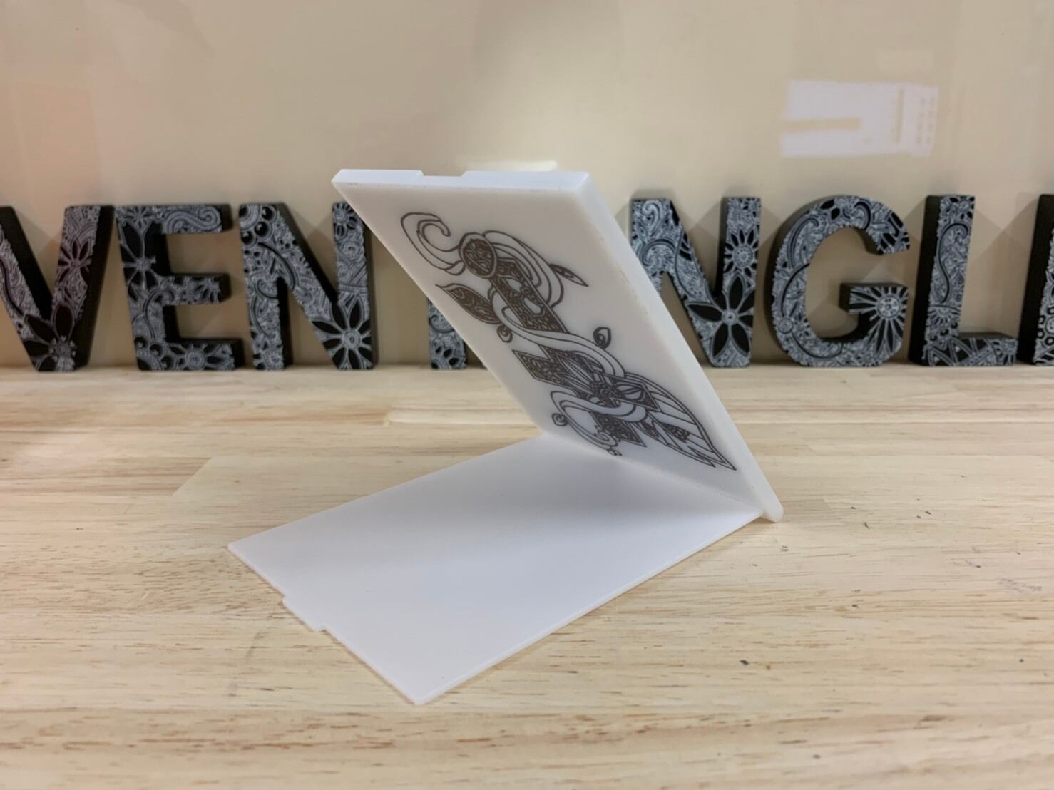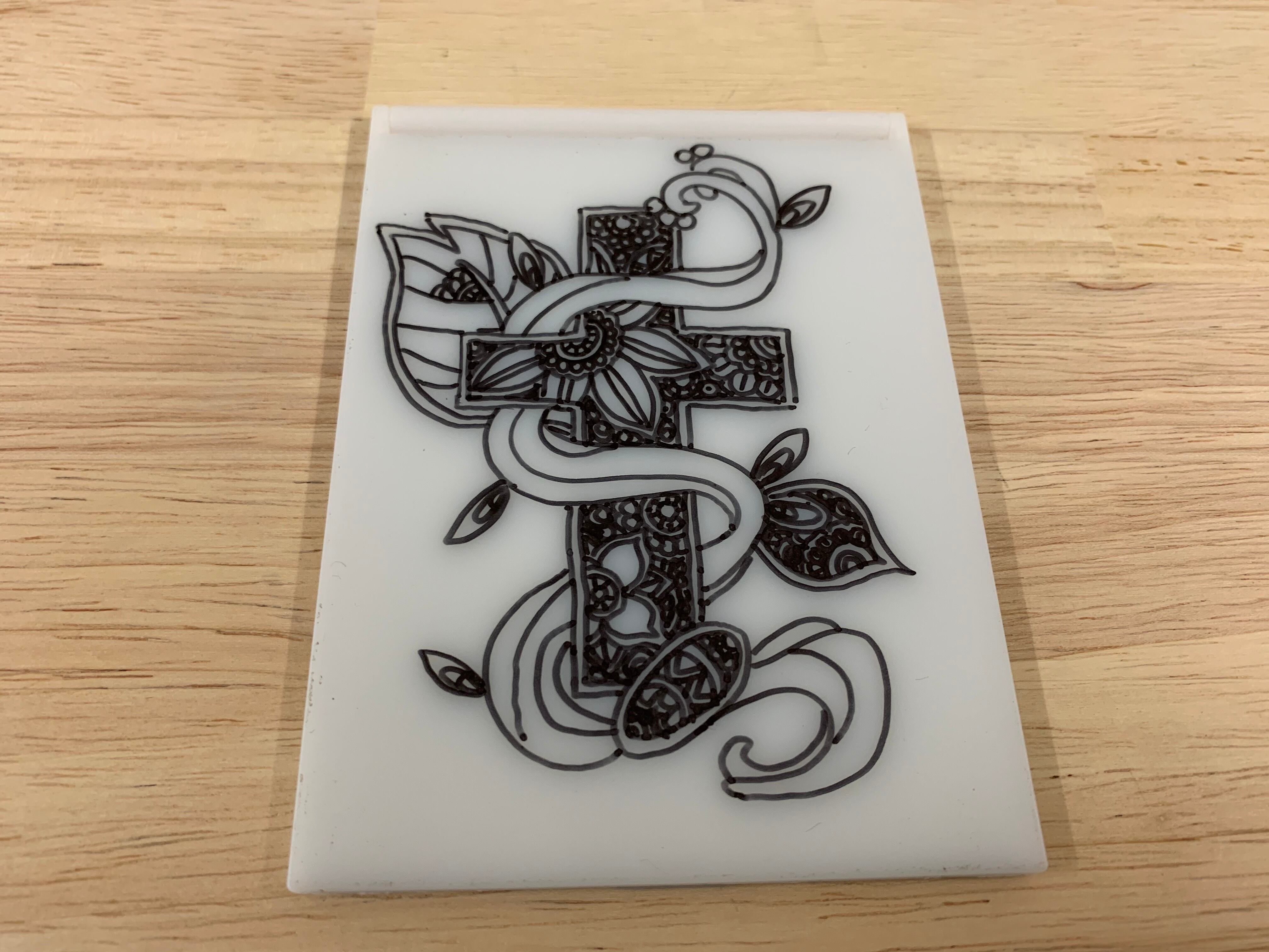 開閉式のハンドミラーに、黒の油性マーカーで”クロスモチーフ”デザインをしました。シンプルなデザインは飽きがきませんね。サイズは約12.5㎝×9.5㎝となります。