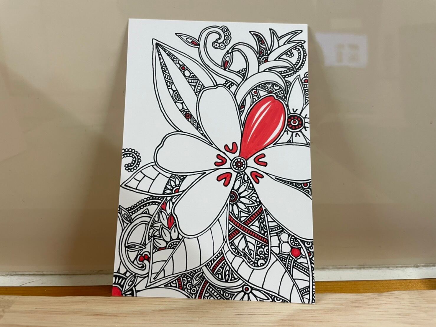 「花」モチーフ、ventangleデザインのポストカードです。(100mm×148mm)初期の作品になります。部分的に赤を使いはじめた最初の作品です。額は付属していません。