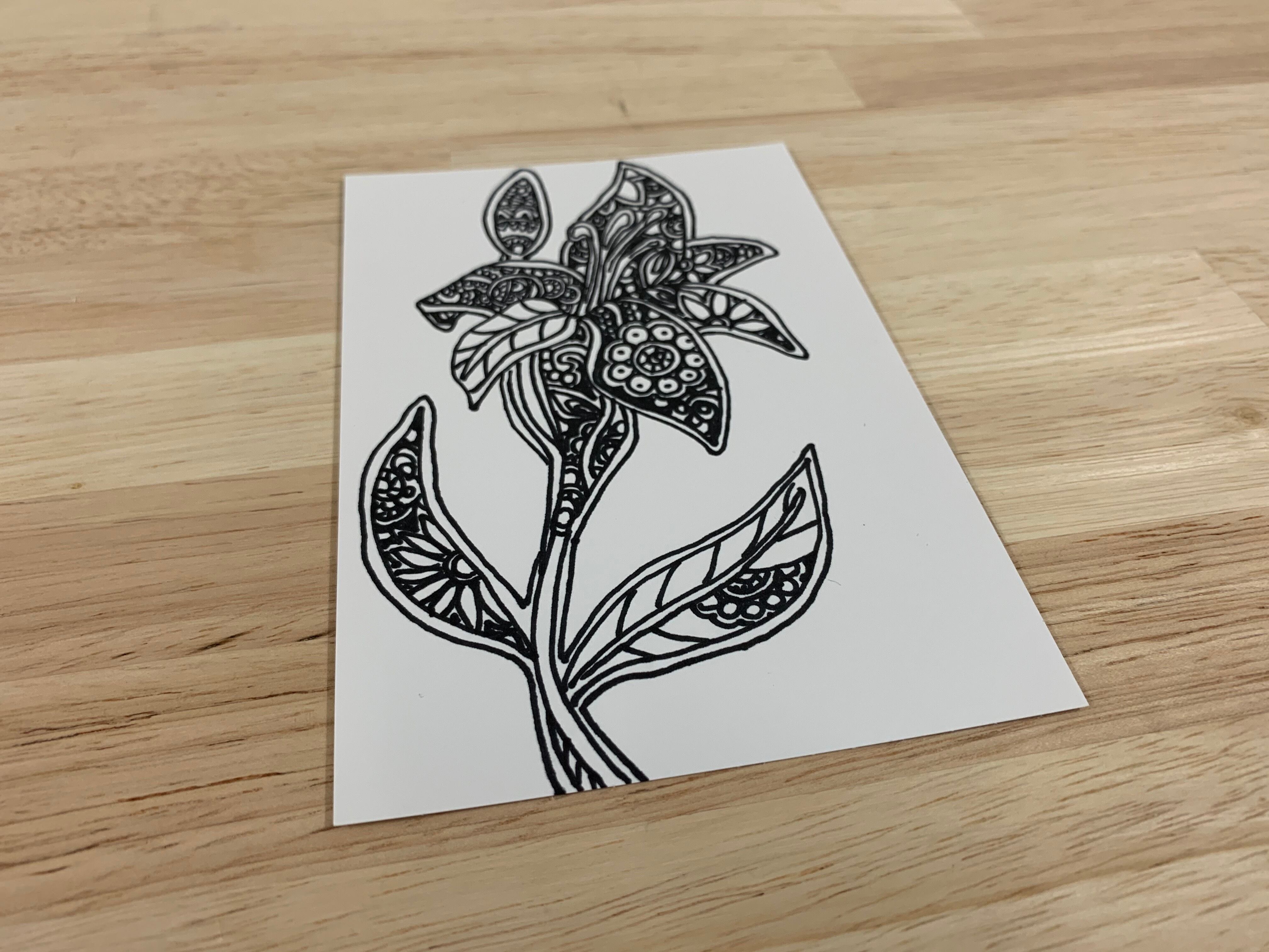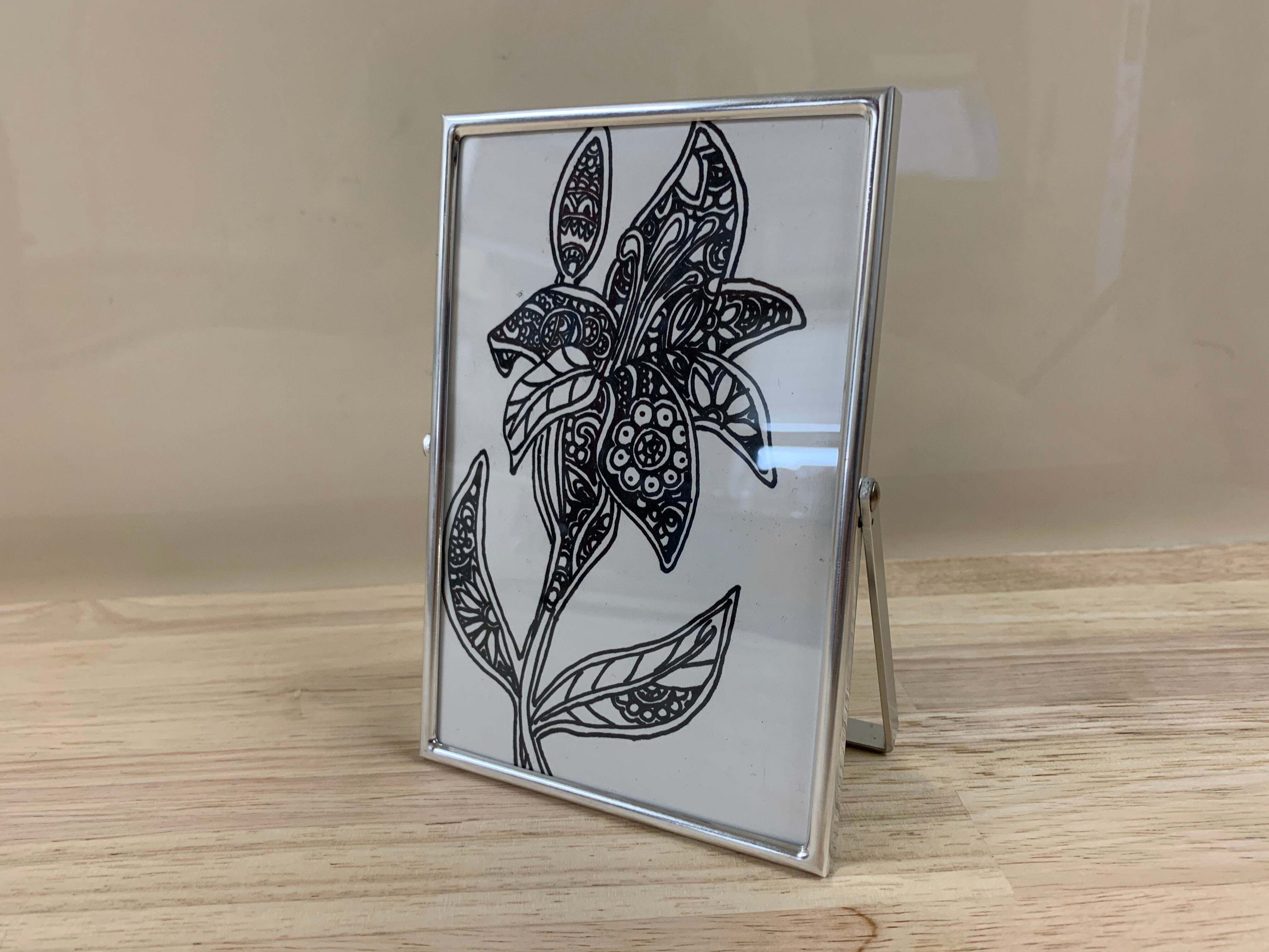 「百合」モチーフ、ventangleデザインのポストカードです。(100mm×148mm)初期の作品になります。造花デザイン(非売品)と対でデザインした作品です。額付きとなります。