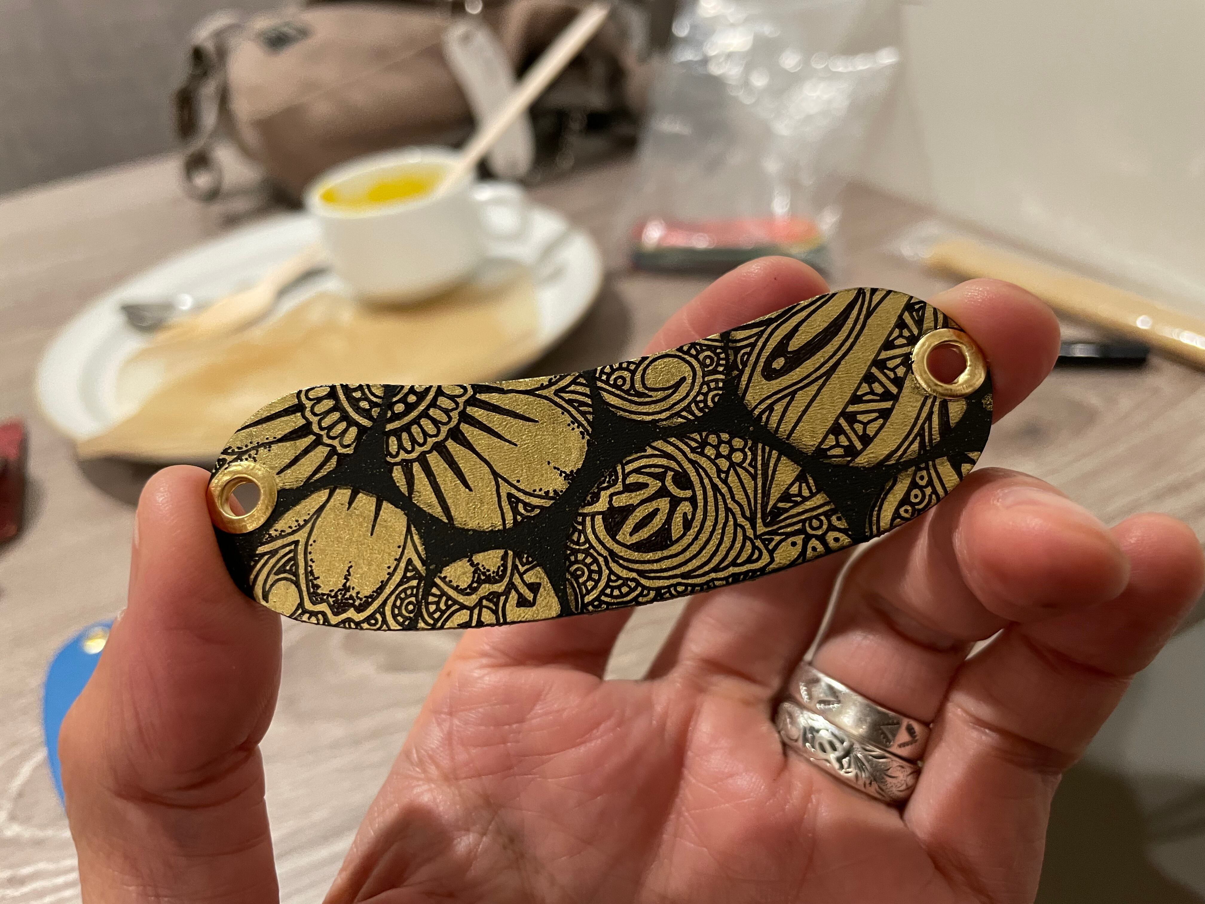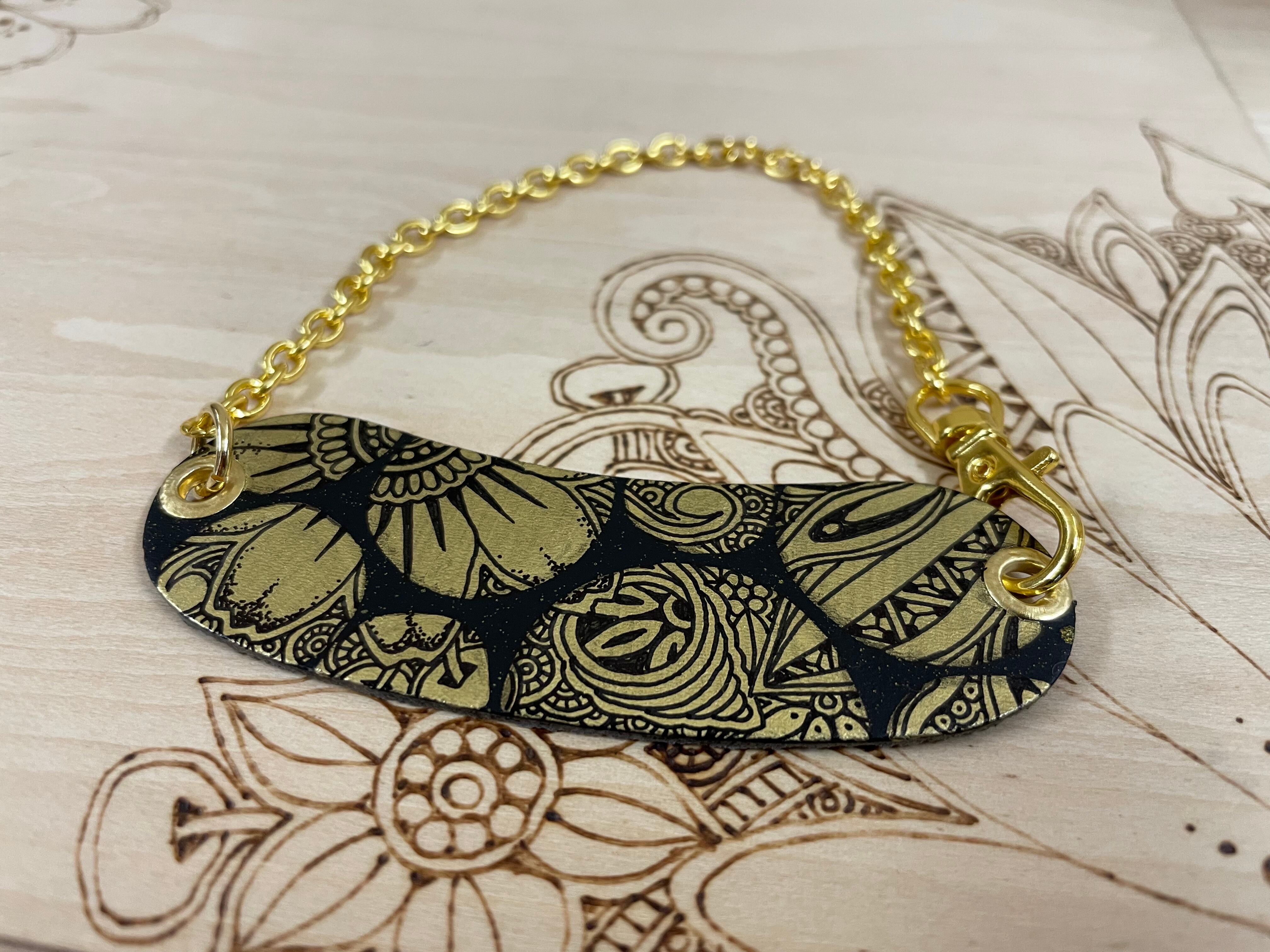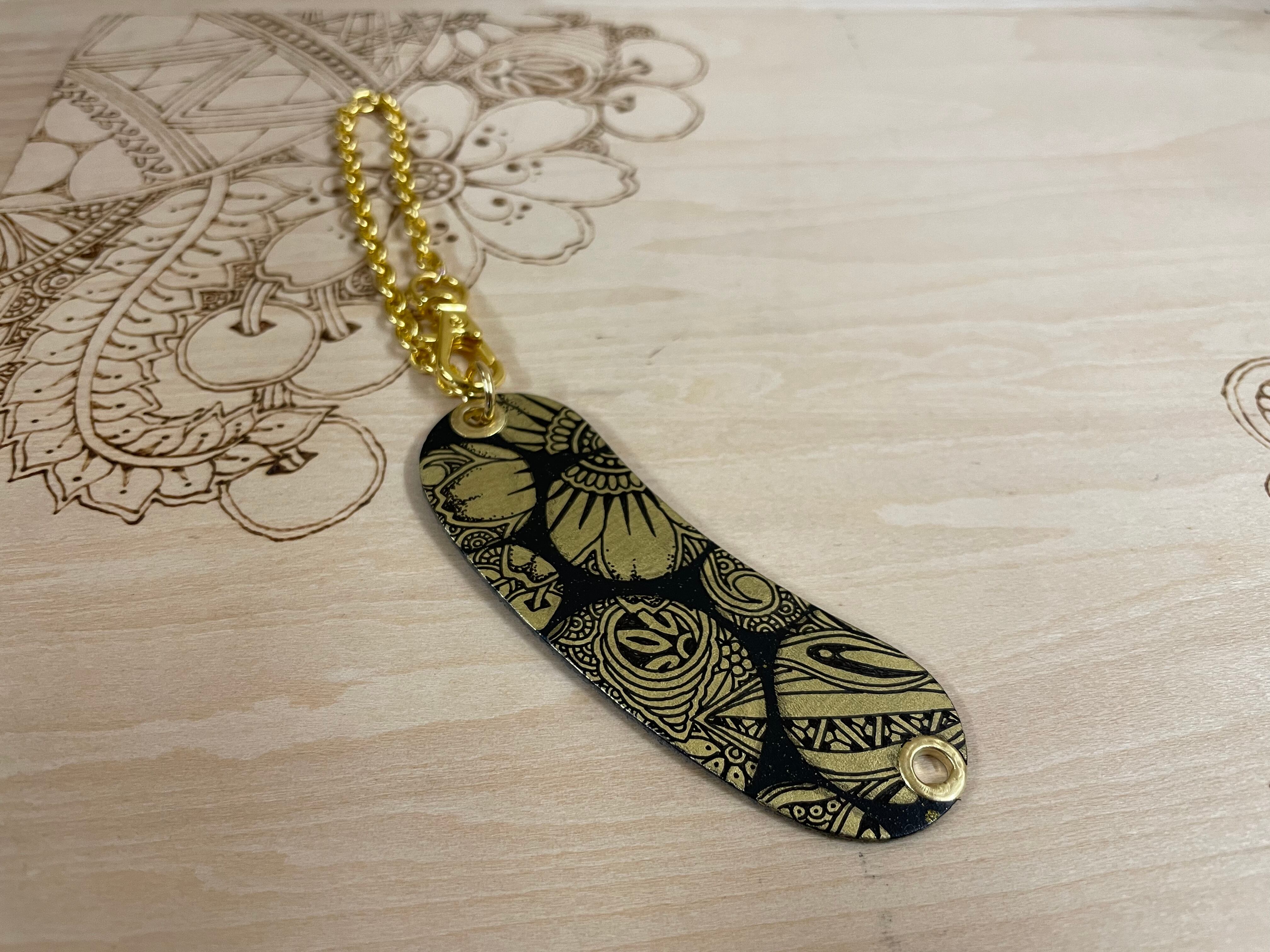 熱にも水にも強い特殊用紙PASCOをベースにして、ゴールドカラーのチェーンを付けたventangleオリジナルチャームです。黒いPASCOに金色のペンなどで着色し、そこにデザインを描いた作品になります。どの作品も手描きとなりますので、世界に1つの作品となります。